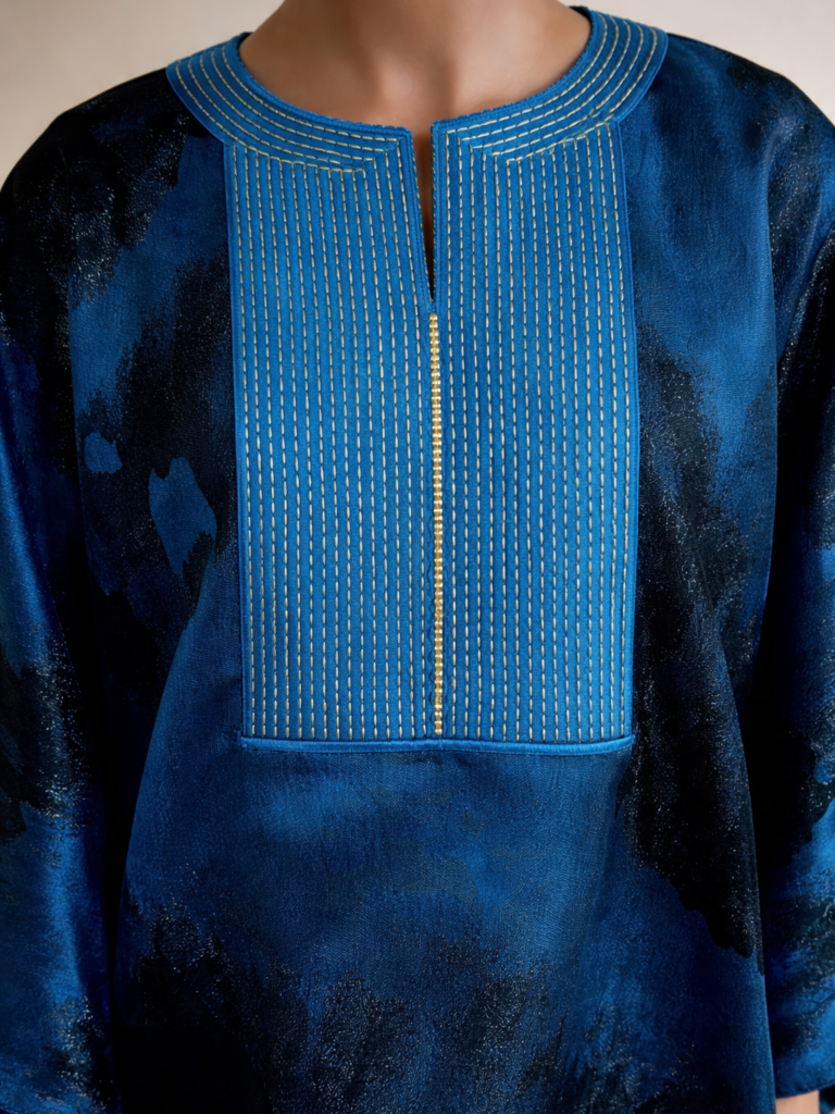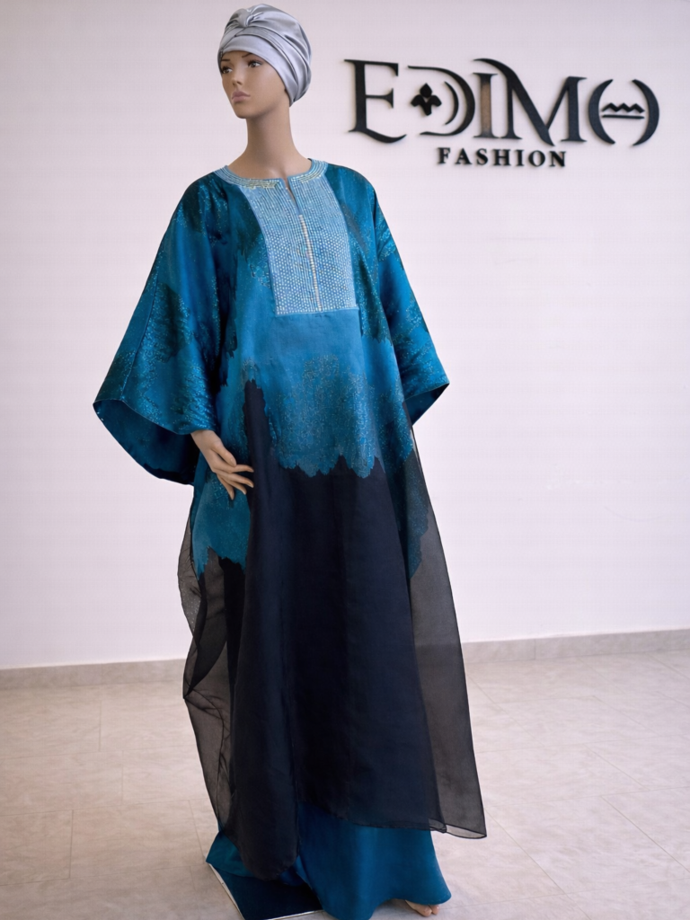 Affirmez une élégance majestueuse avec ce grand boubou signé EDIMO Fashion, une pièce pensée pour captiver sans effort. Confectionné dans un somptueux brocard émeraude deux tons, ce modèle joue avec la lumière pour révéler toute la profondeur et la richesse du tissu. Sa teinte intense incarne à la fois prestige, équilibre et distinction.